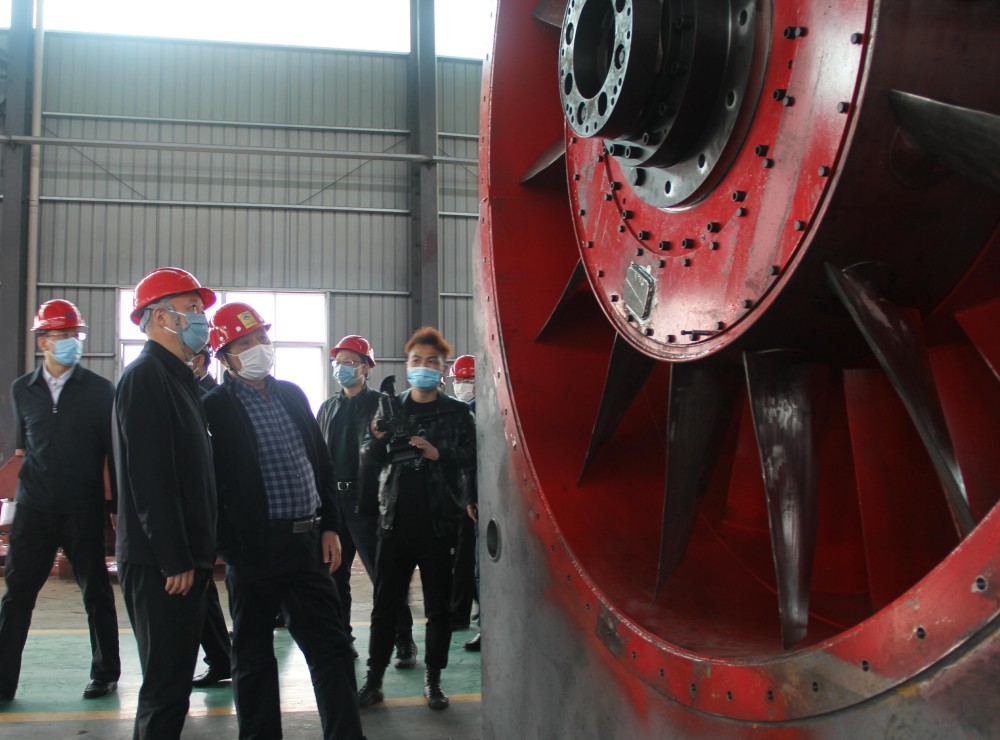 (王江平副部長(zhǎng)在鼓壓風(fēng)機(jī)制造事業(yè)部了解公司產(chǎn)品)